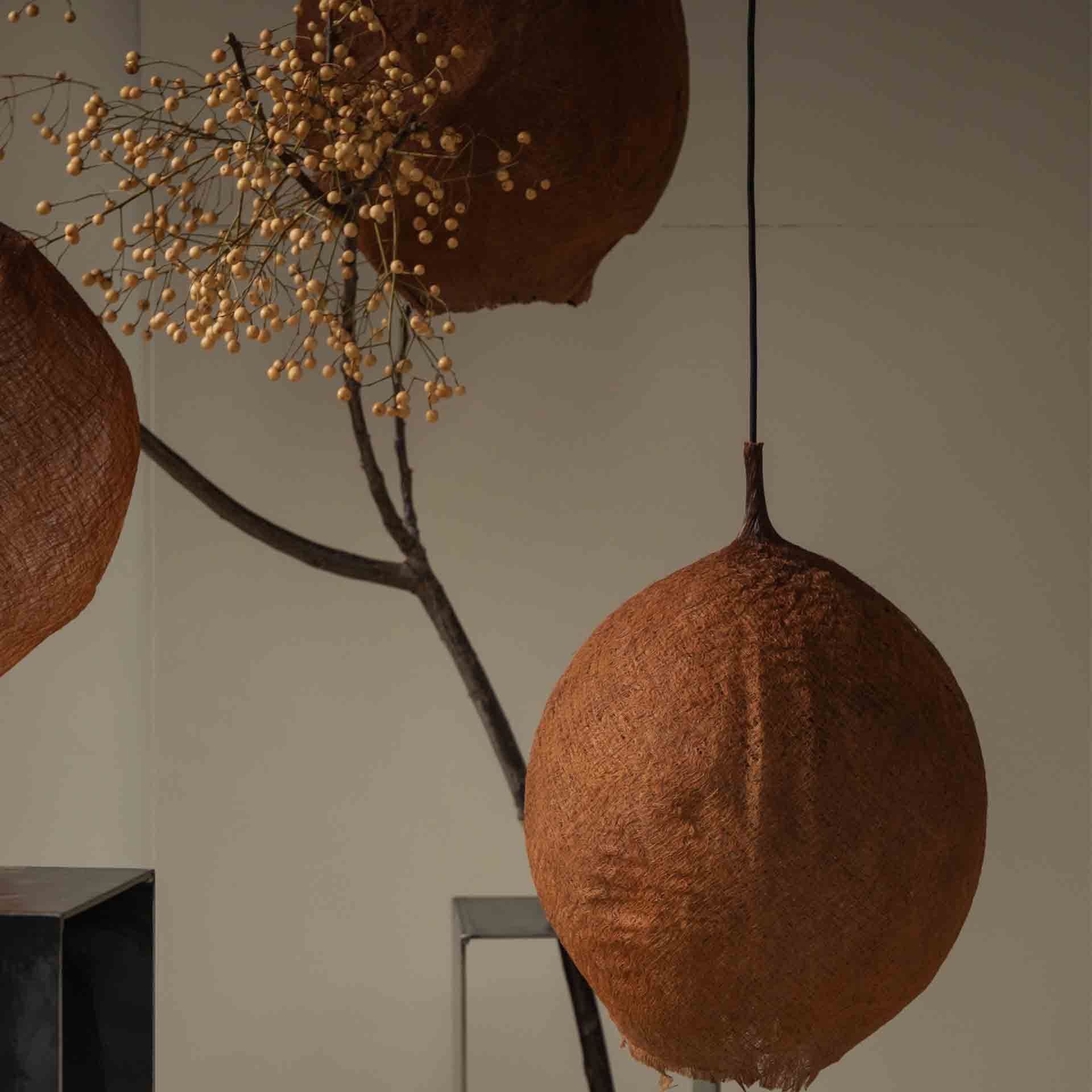 Flexible, versatile and very malleable. The American palm tree leaf can be adapted to any shape required if handled correctly. The craftsman patiently moulds the leaves to the design with steam. It’s a painstaking process that it completely carried out be hand. The couro doesn’t respond well to machinery, only the human hand that converts them into sinuous lamps with a warm illumination or beautiful and stylish hats.