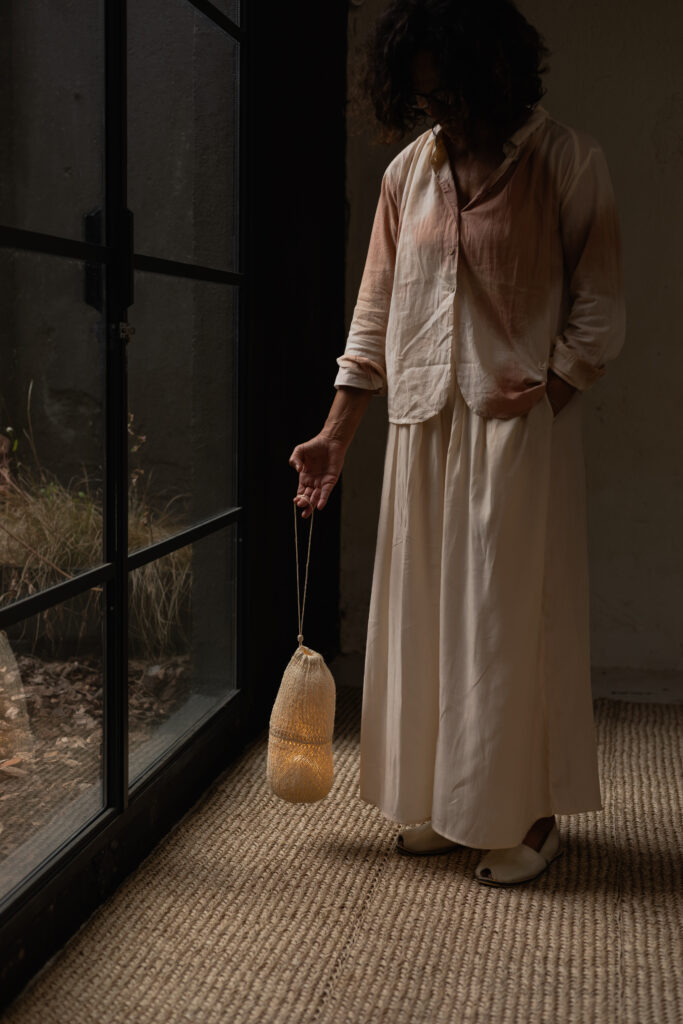 The installation features a curated selection of Let’s Pause lighting pieces created through natural upcycling processes. The brand gathers organic elements that have completed their life cycle in nature and transforms them into contemporary design objects through the skilled hands of master artisans.