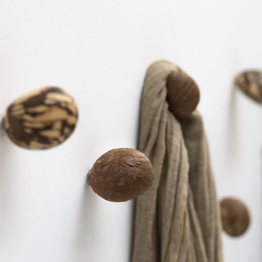 The Gemma, Molaris, and Olivo wall hooks complete the presentation, integrated into a fascinating and mysterious exhibition space where each piece originates from natural elements left behind and reimagined as contemporary design and luxury. True to its philosophy, Let’s Pause respects the organic nature of materials, avoiding chemicals or artificial processes in production.