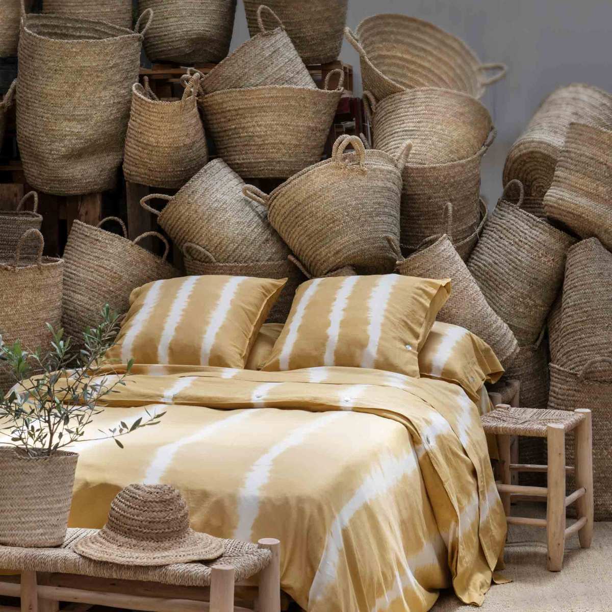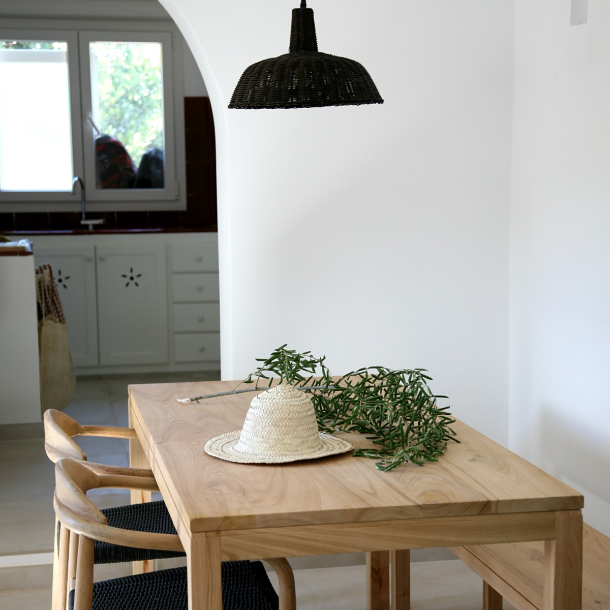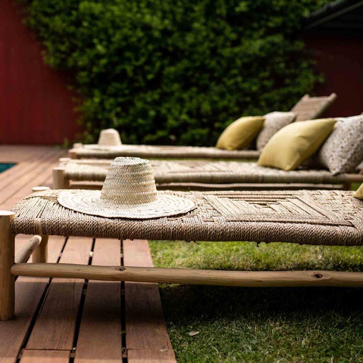 Hoja de palma (Chamaerops humilis). Palma enana, palmiche, palmito. Distintos nombres para referirnos al mismo elemento: la palma. De esencia humilde, no goza en decoración de la fama de otros materiales nobles. Y por eso, precisamente, nos gusta tanto trabajarla. Una especie vegetal autóctona de Europa que busca para crecer tierras calcáreas, el aroma del mar, el sol fuerte del mediodía; puro carácter mediterráneo.