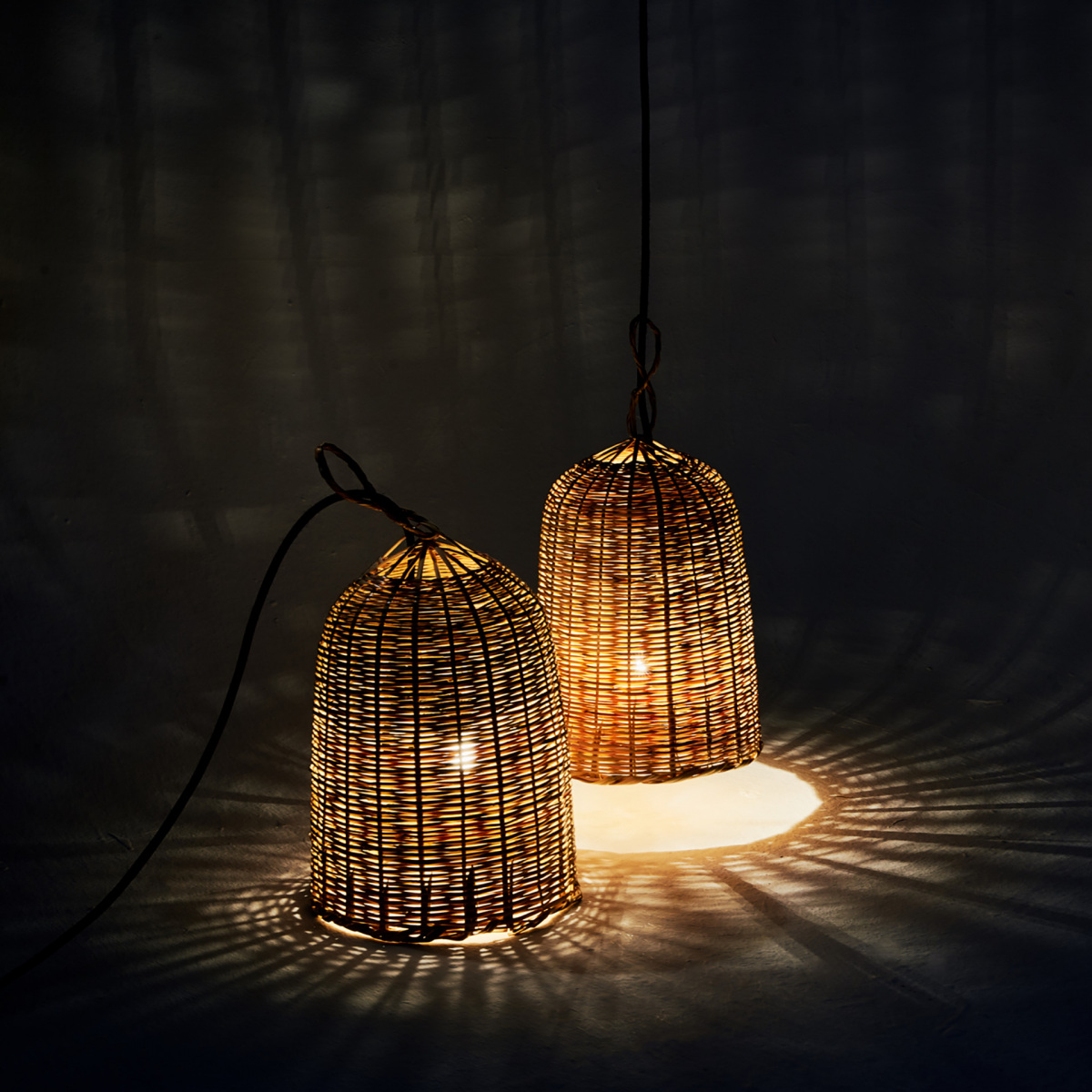 Maleable, flexible y pura calidez. Por eso la caña es uno de nuestros materiales favoritos para crear piezas de iluminación. Pantallas, lámparas y guirnaldas que decoran con naturalidad pero, sobre todo, proyectan una luz cálida y armónica, juegos de luces y sombras especiales como una puesta de sol.