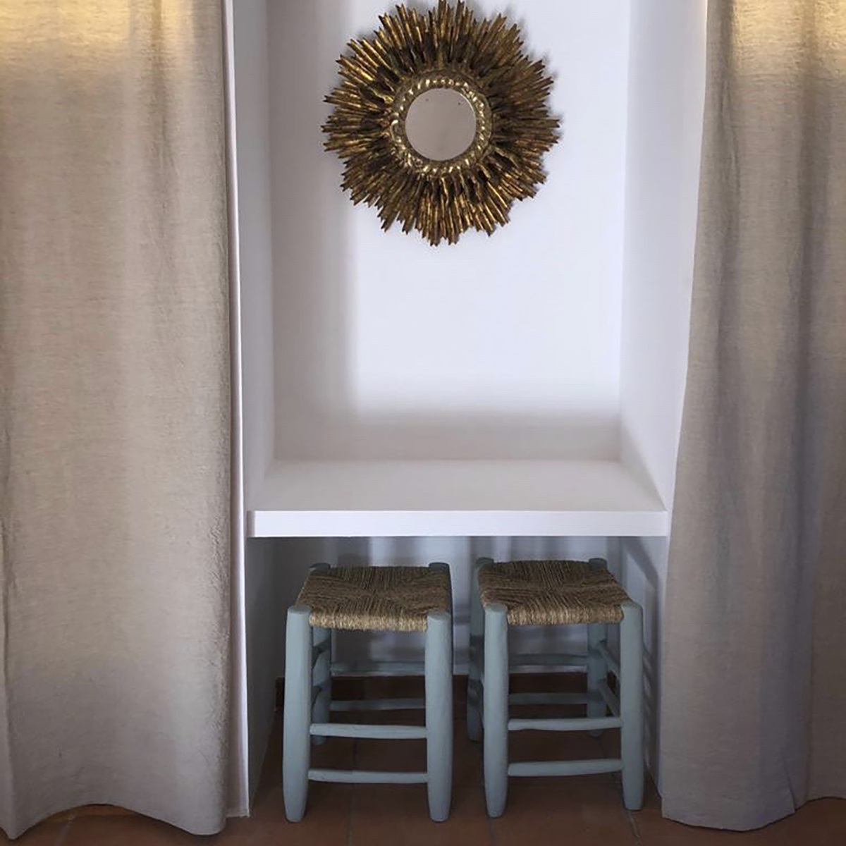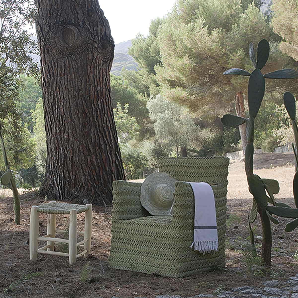 Por su belleza y ligereza, por su nobleza, por su maleabilidad para esculpir en él, en Let’s Pause amamos el álamo blanco. Por eso tenemos más de quince productos cincelados en su madera. Galanes, percheros, tumbonas, canapés, sillas, mesas bajas, taburetes, escritorios, apliques, cabezales… Cuando algo te seduce completamente es imposible no imaginarlo en todas partes, embelleciendo todo su entorno. Las palmas se cortan con una hoz pequeña fabricada especialmente para este propósito. Se amontonan y se atan en gavillas para su transporte. Se extienden al sol para secarlas y olvidan su color verde para adoptar el pajizo tan característico.El secado de las hojas hace imposible su manipulación, al trenzarlas se romperían. Es preciso escaldarlas y volverlas a secar para recobrar la elasticidad.Para obtener la hoja con la que tejer es preciso cortar los trozos de tallo que sostienen los grupos de hojas de múltiples capas. Hay que separar las hojas, una a una. Una vez individualizadas, no todas servirán. Solo las más bellas se convertirán en brins, la materia prima con la que tejer. Los brins se trenzan formando ristras estrechas de distintos centímetros de ancho, según la pieza a confeccionar. Estas llatas deben secarse al sol unos días hasta que estén listas para ser cosidas.El último paso, el más delicado, el que requiere de unas manos expertas y sabias. Es aquí donde se aprecia la valía de la artesana, que queda impregnada para siempre en los bellos objetos que teje y confecciona.